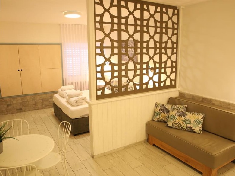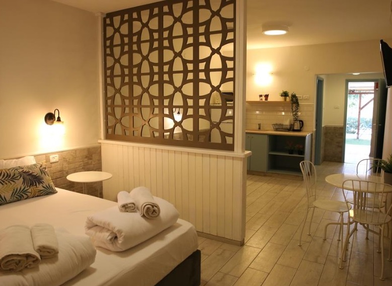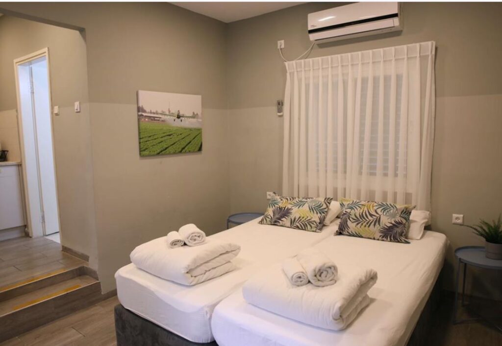 כל חדר כולל מזגן, מצעים, מגבות, פינת קפה, מקרר קטן, מקלחת ושקט להתחדשות עמוקה.